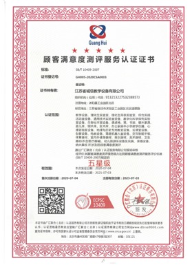 顧客滿意度測評(píng)服務(wù)認(rèn)證證書